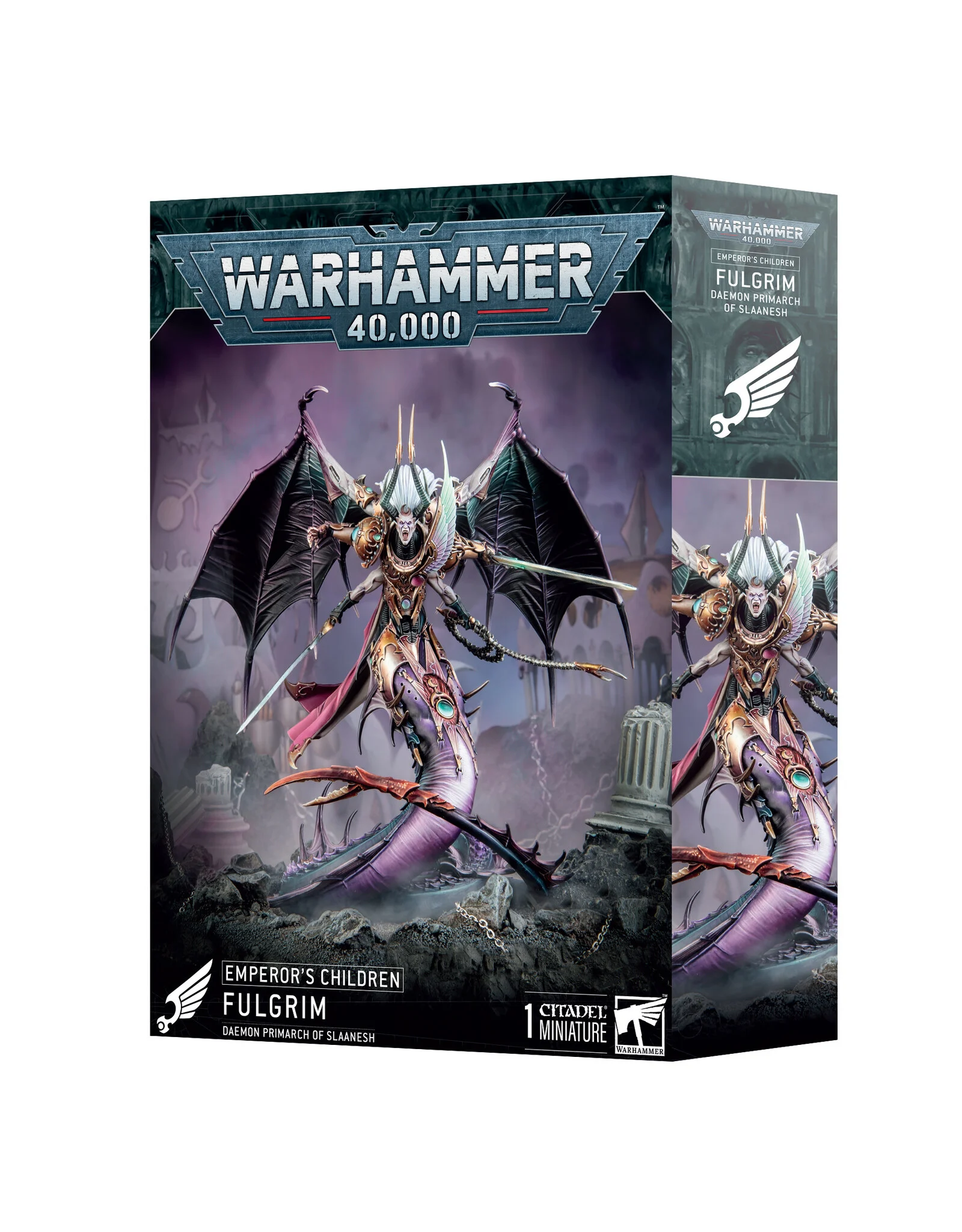 Fulgrim, the Primarch of the Emperor’s Children, is one of the most tragic and pivotal figures in the history of the Imperium. Known as the Phoenician, he was initially a beacon of perfection, driving his Third Legion to achieve unparalleled excellence in both martial skill and artistic endeavor. This highly detailed miniature captures the Primarch in his pre-Heresy glory, before the taint of Chaos and the influence of Slaanesh utterly consumed him.