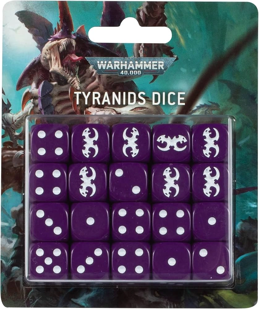 - Faction Identity: Features the Tyranid icon on the “6” face for thematic critical hits.
